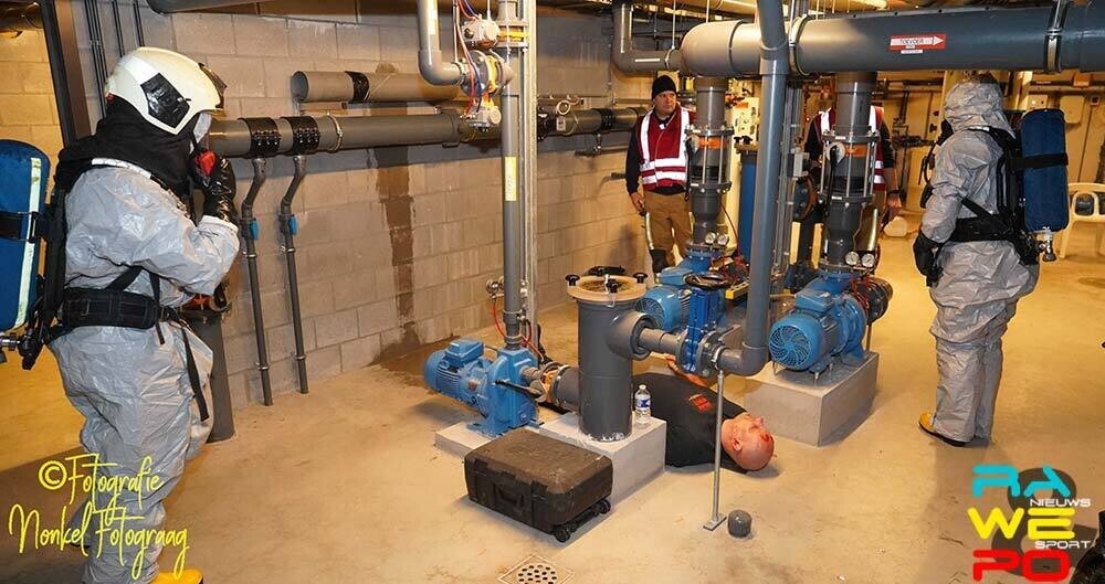 De oefening kreeg extra gewicht door omgevallen vaten met natriumhypochloriet en waterstofchloride—een gevaarlijke combinatie die in werkelijkheid giftig chloorgas zou vormen. De ploegen moesten de lekkende plassen strikt gescheiden houden, de ruimte ventileren en vooral letten op windrichting en de rode scheidingslijn tussen ‘vuil’ en ‘proper’ gebied.