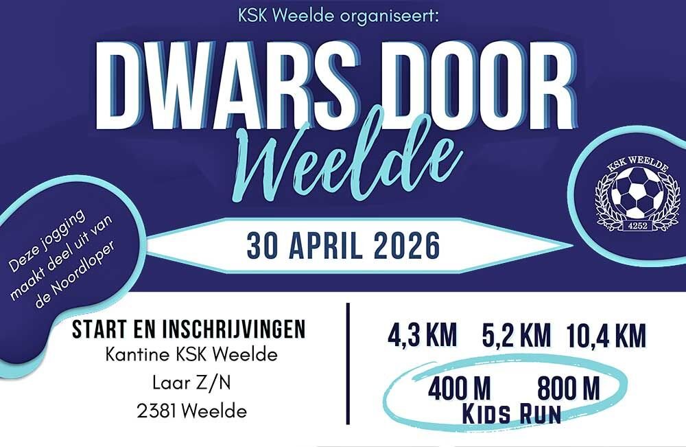 Op donderdag 30 april 2026 is het zover: KSK Weelde trekt onafhankelijk van het voetbal de loopschoenen aan voor een nieuwe editie van Dwars door Weelde.