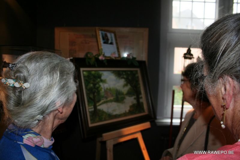 Afgelopen zondag werd Mevrouw De Mulder dan ook met open armen ontvangen door de mensen van de heemkundekring. Ook Wilma Wilke, Marleen Dickens (die infeite de beslissende schakel was tot dit verbond) en Mevrouw Misonne van de Schrieken waren uitgenodigd voor dit plechtige moment. Met veel bewondering beschreef laatsgenoemde trouwens de prachtige taferelen op het doek.