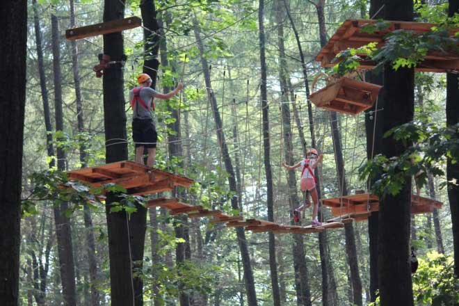 Kom dus nog lekker klauteren tussen de boomtoppen. Klim over spannende bruggen, bedwing hoge touwnetten en laat je gaan op de zip-lines (tokkelbanen). Een avontuurlijke beleving midden in de natuur. Leef je uit op de 3 verschillende parcoursen met meer dan 25 hindernissen. Je overwint een hoogteverschil tussen de 4 en de 12 meter. Er is zelfs een basisparcours dat toegankelijk is voor rolstoelers.