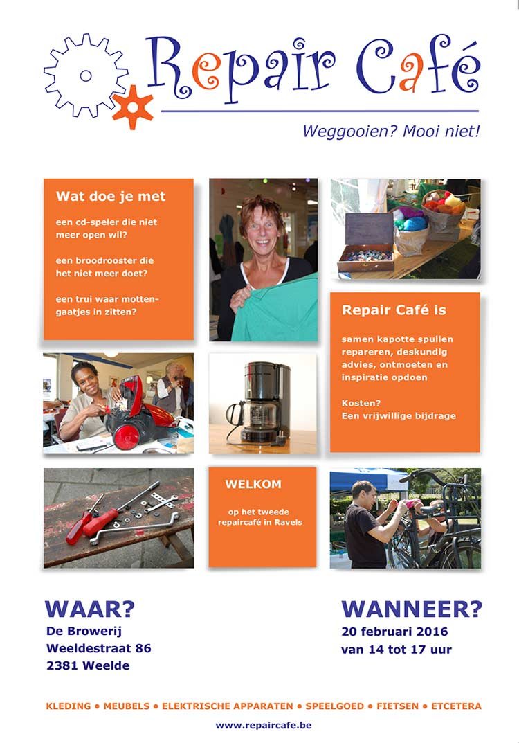 Doe mee met het Repair Café Ravels op 20 februari 2016 van 14.00 tot 17.00 u in De Brouwerij te Weelde.
