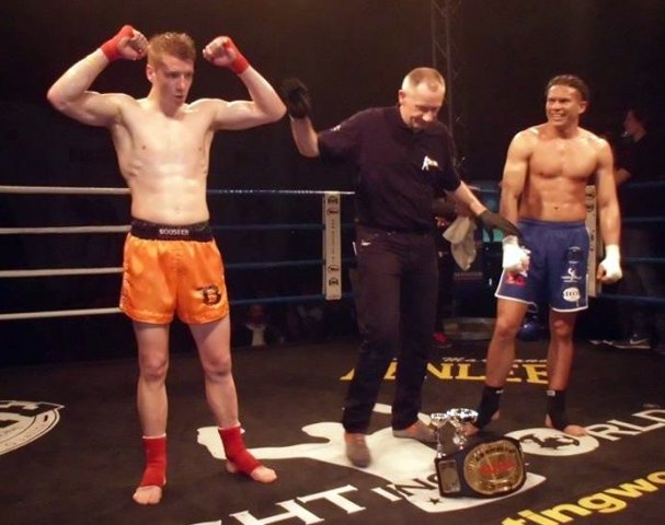 Einde partij, na 5 rondes van 3 minuten was de winnaar duidelijk gekend. Hij kwam keihard terug nadat hij in de eerste ronde nog even op de knieen moest, maar mag zich nu met trots BENELUX-KAMPIOEN noemen : VINCENT GLORIS ! De fans waren uitzinnig en onder waanzinnig applaus verliet Vincent de ring als verdiende winnaar.