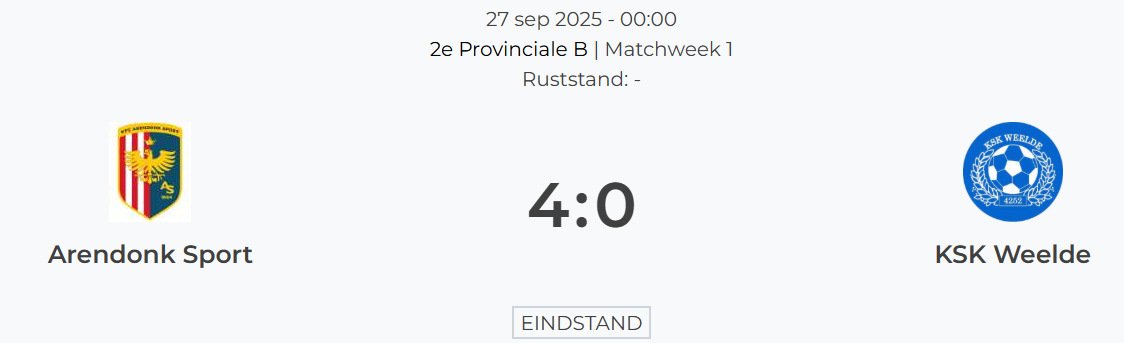 Om 18u00 spelen de U12 van beide teams een voorwedstrijd in het schitterende voetbalcomplex van Weelde, om 19u30 is het aan de eerste elftallen.