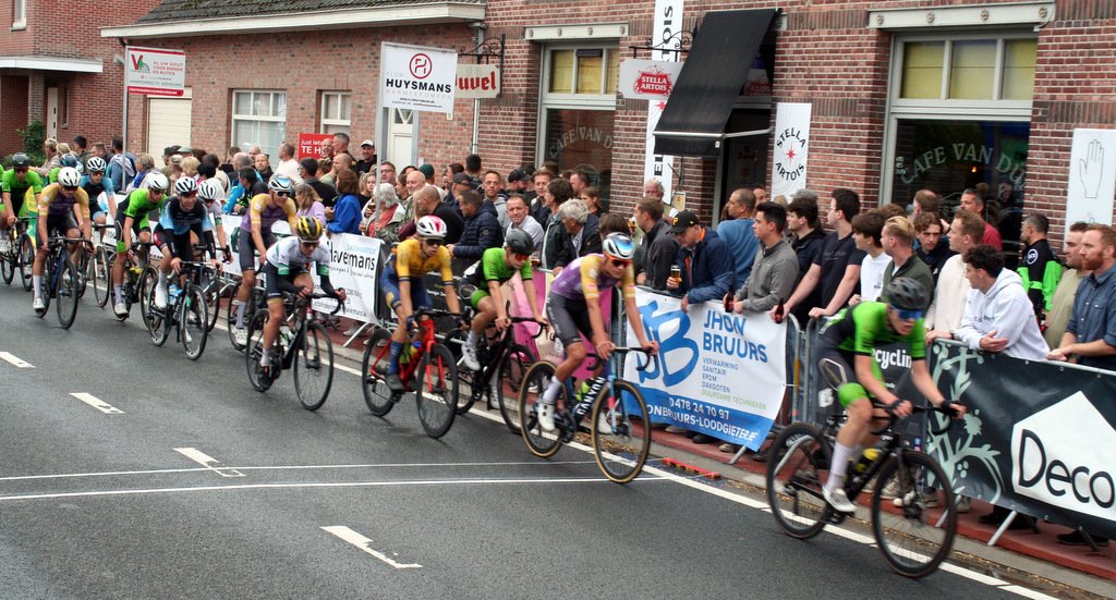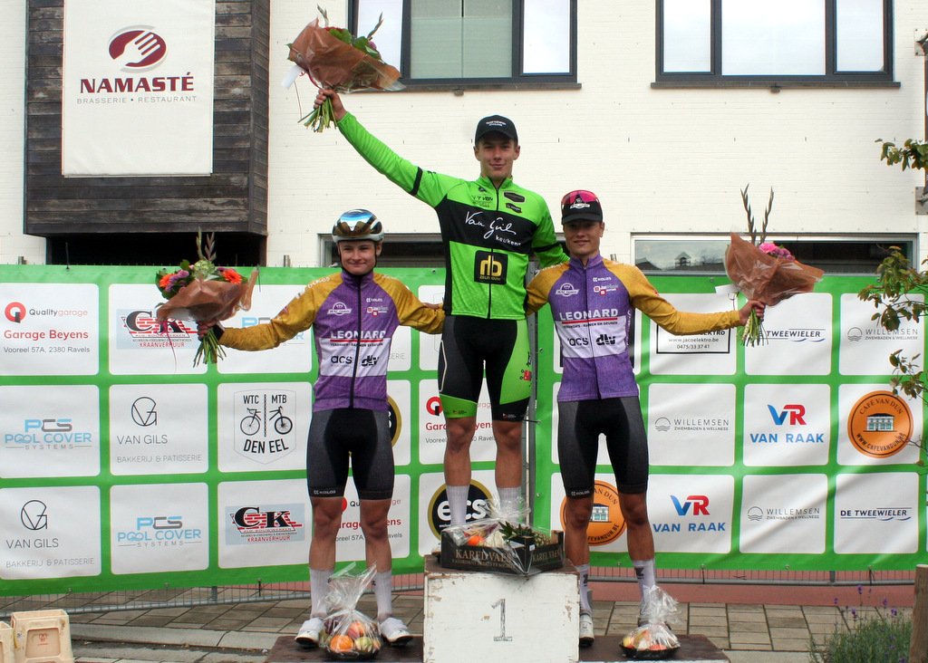 In de laatste hectometers werd het publiek op een spannende pelotonspurt getrakteerd. En jawel – het thuispubliek kreeg waar voor zijn geld. Rune Van der Moeren, eerstejaars junior bij Team Kempen, wist zich perfect te positioneren en sprintte iedereen uit het wiel. Zijn eerste overwinning, en dan nog wel in zijn eigen Ravels Eel, voor familie, vrienden en dorpsgenoten. De jonge Eelnaar bezorgde zo zichzelf én het thuispubliek kippenvelmomenten van jewelste. Een mooier scenario kon men haast niet schrijven. Sam Van Pelt en Lennert Meeusen, beide van het WAC Team, werd respectievelijk tweede en derde.
